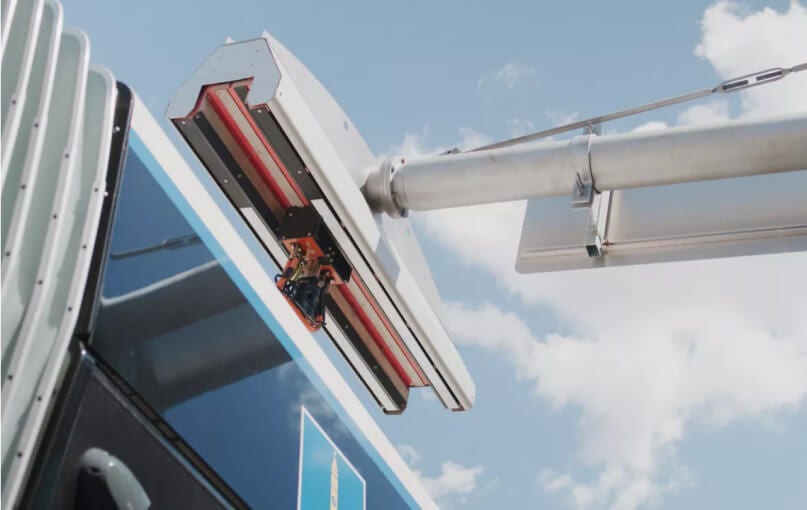 Hitachi Energy’s roof-mounted Energy Transfer system connects when the metro’s door brake is activated, automatically starting to charge within seconds of the bus arriving at a charge point, and recharging in six-and-a-half minutes. This automatic system also means bus drivers don’t have to think about connecting to chargers, plus there’s no need to carry large batteries on board, freeing up room for additional passengers.