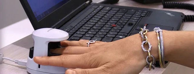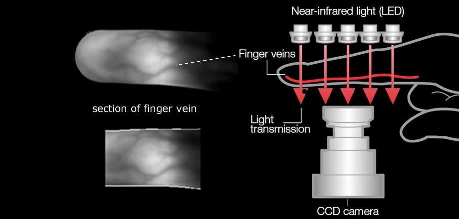 Hitachi’s Finger Vein Authentication System captures images of the vein patterns inside your finger