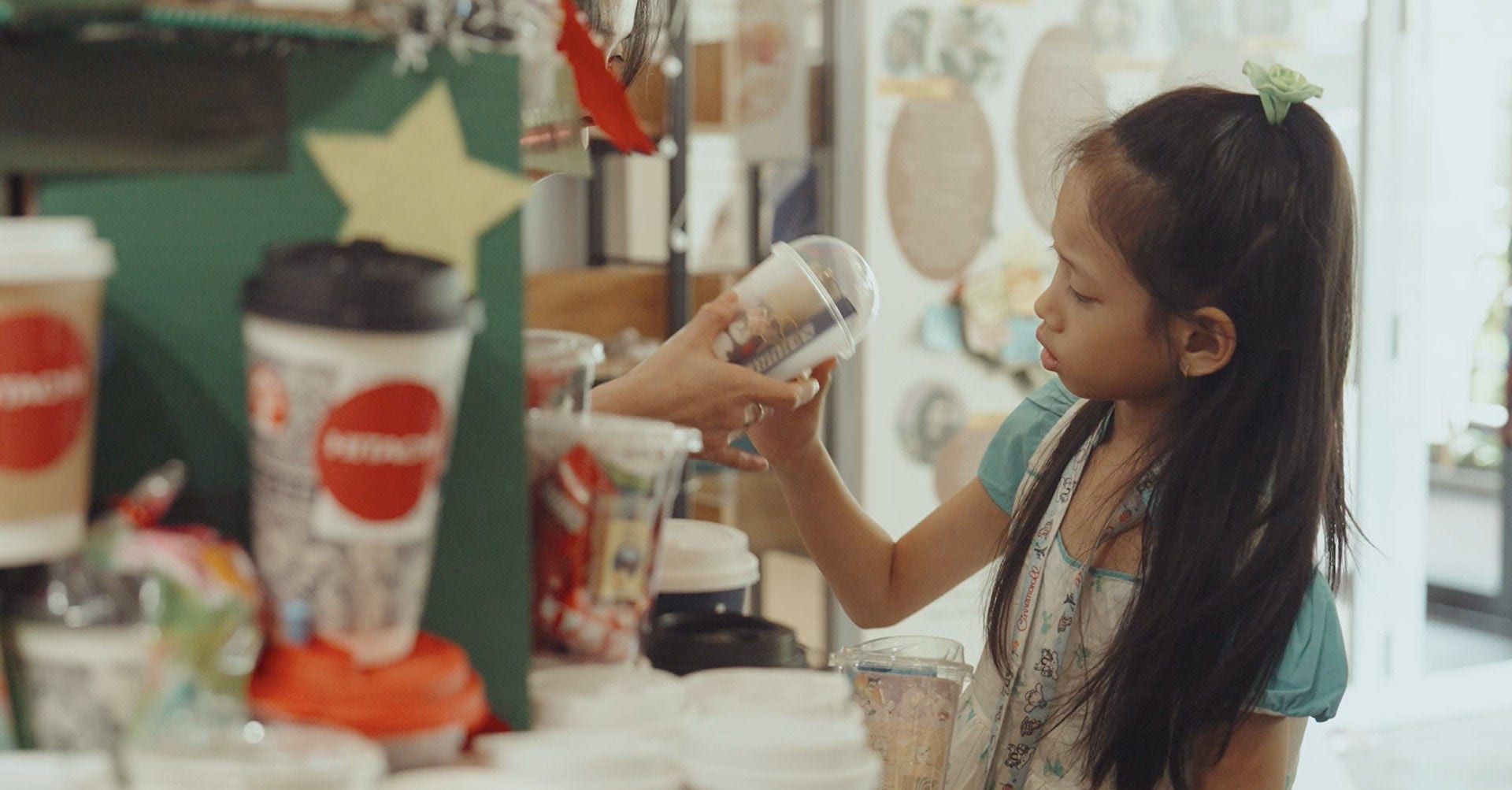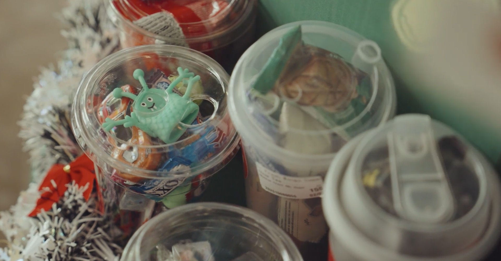 Each tree utilised recycled cardboard as the base and were adorned with the donated cups, now filled with snacks and toys for the children.