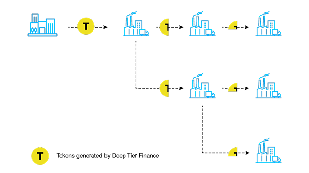 The token serves as receivables for suppliers, enabling them access to financing earlier than usual. With this token, suppliers can secure financing based on the creditworthiness of their buyer. The token can be split down the supply chain to sub-suppliers to secure financing as well.