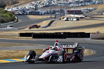 Driver Castroneves, sprinting at the Sonoma finale race on September 18