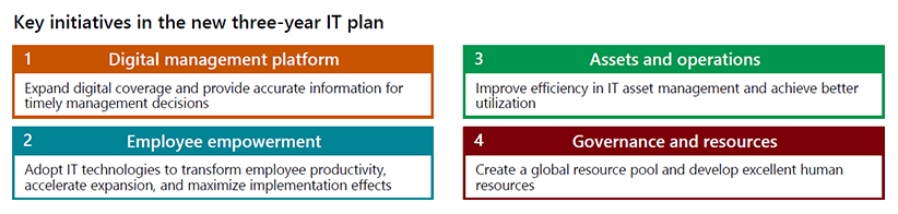 By promoting the four initiatives set as key measures, namely digital management platform, employee empowerment, assets and operations, and governance and resources, we will produce definite results and contribute to business expansion and the realization of digital management.