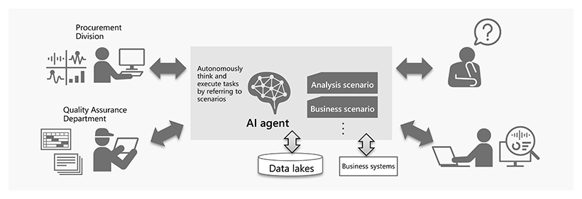 We are promoting initiatives to streamline business processes by leveraging AI agents, which are the key technology of generative AI, to achieve interconnectivity with existing business systems, specialized AI for business operations, various data lakes, and office environments. This initiative has begun verification in FY 2024, and we will gradually provide an environment where AI agents can be utilized within the Hitachi Group starting from FY 2025.