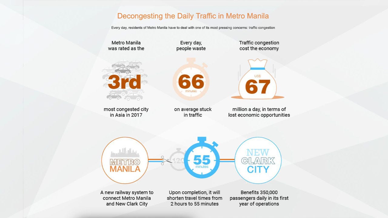 New Clark City, sebuah kota pintar sejauh hanya 80km dari Metro Manila, memanfaatkan sistem manajemen pintar untuk memastikan swasembada listrik, air, dan fasilitas manajemen limbah.
