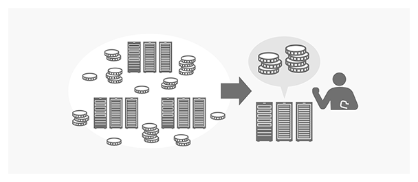 IT資産のクラウド移行、共通化、断捨離を推進し、オペレーションの集約化を実施することで、適切なITコスト比率、迅速なサービス提供、さらなる堅牢化、カーボンニュートラルを実現します。