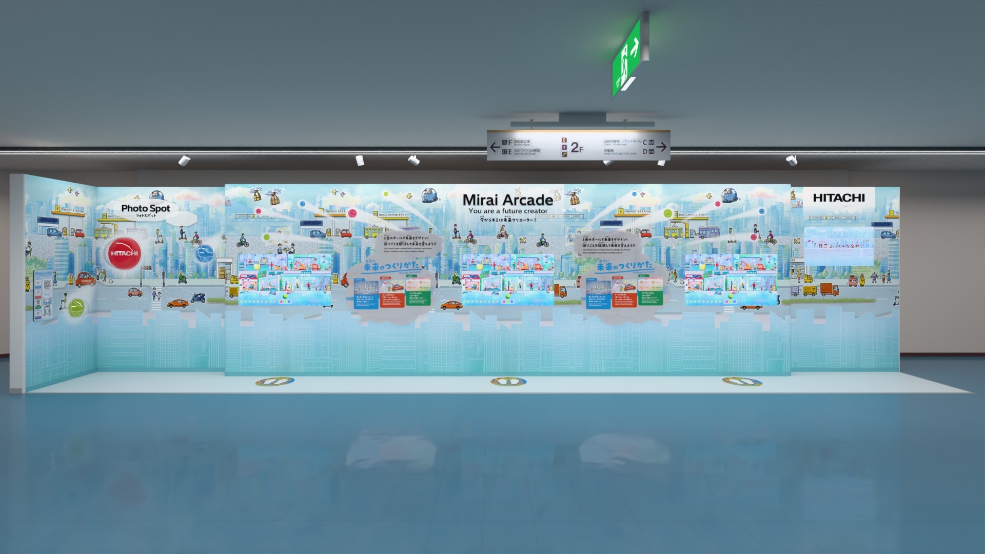 2025年大阪・関西万博「未来の都市」において「未来は自分たちで変えられる」をコンセプトに、日立製作所・KDDIプレイスで共同展示を行いました。その一部「Mirai Arcade(ミライアーケード)」を科学技術館の日立ブースに移設し公開しています。