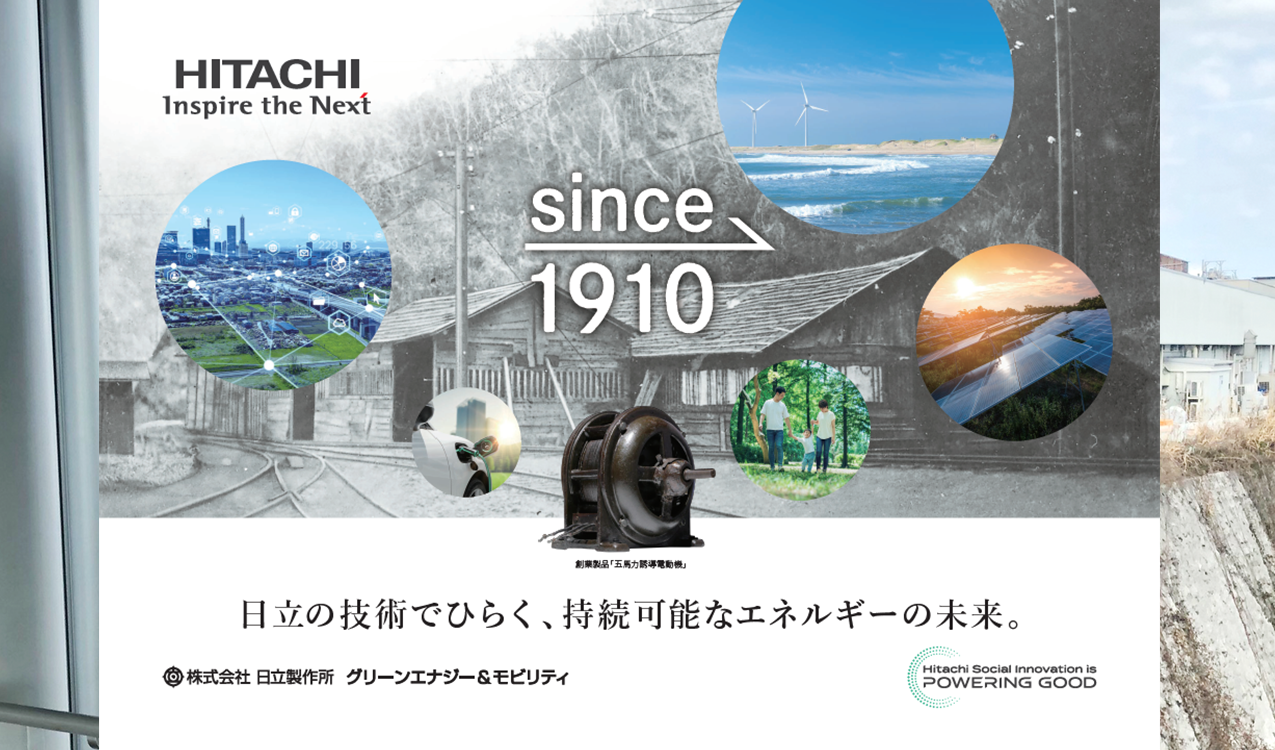 日立製作所の創業の地であり、当社のエネルギー事業を支える重要な拠点でもある茨城県日立市で、当社のメッセージなどを込めた広告グラフィックを掲載しています。