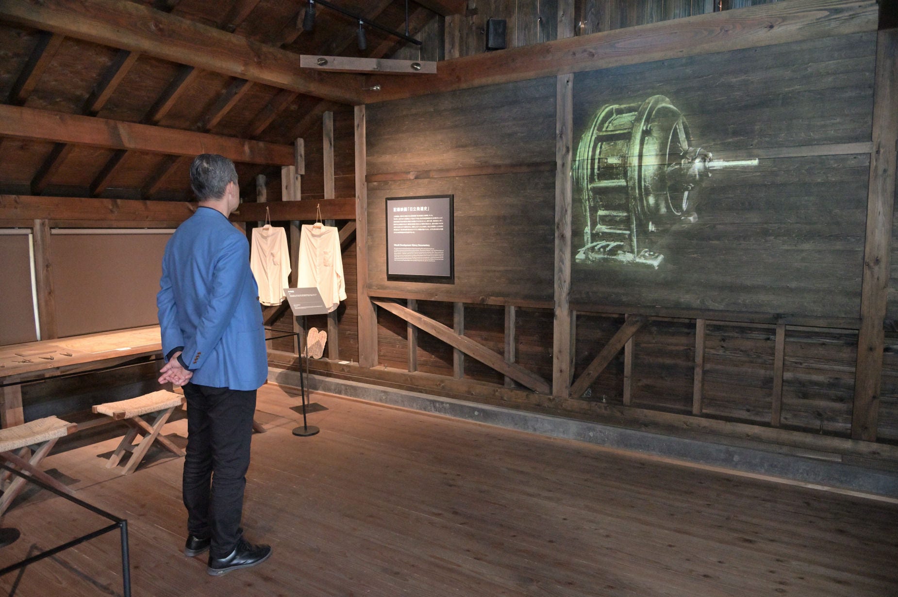 創業小屋の内部では、戦時中に制作された記録映画「日立発達史」の映像も見られる