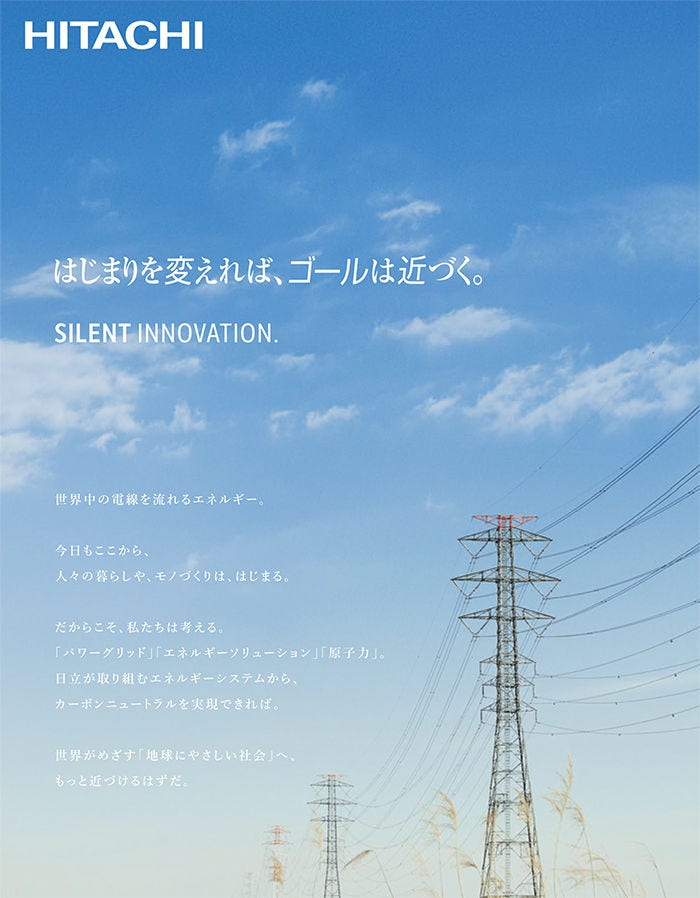 2024中期経営計画の達成に向けた中間点である2023年度にむけて、日立が掲げる環境成長戦略の中核事業であるグリーンエナジー事業のプレゼンスの向上、お客さまの期待感の醸成などを目的としして制作した広告です。