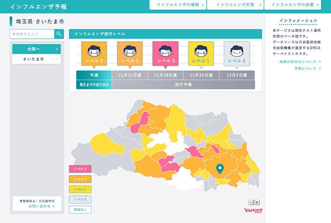 ‘사이타마시 인플루엔자 예보 서비스’ 실증실험의 웹 이미지.