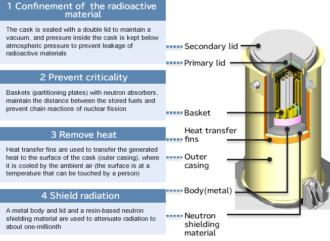 Spent fuel contains uranium that can still be utilized, and plutonium newly generated through nuclear fission reactions. The process of recovering these materials through reprocessing, mixing them, and reusing them as mixed oxide (MOX) fuel for further power generation is called the nuclear fuel cycle. It is expected to lead to more efficient utilization of resources and a reduction in radioactive waste. To facilitate this nuclear fuel cycle, construction and operation of the Rokkasho Reprocessing Plant—a dedicated facility for reprocessing spent nuclear fuel in Rokkasho Village, Aomori Prefecture—are currently underway. The metal casks, which play the vital role of transporting spent fuel to the Rokkasho Reprocessing Plant and storing it while awaiting reprocessing, are essential products for establishing the nuclear fuel cycle.