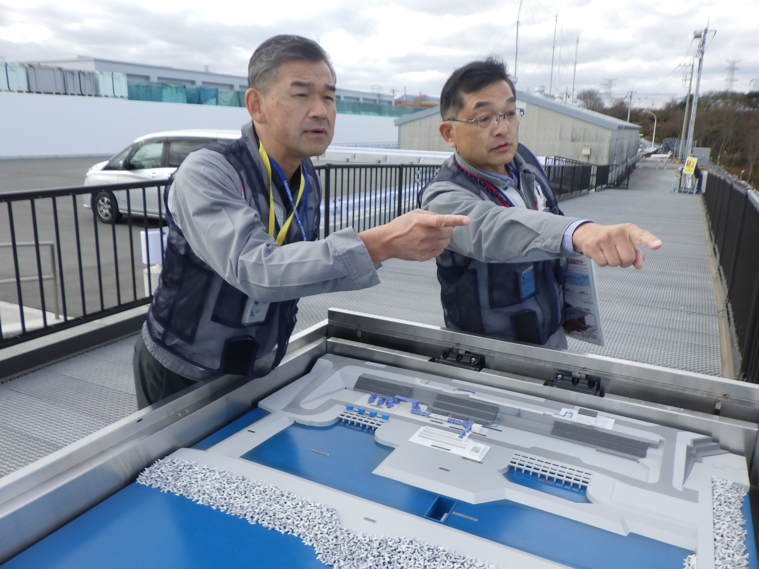 Next, after being shown locations that had been the planned construction sites for Units 7 and 8, now being used as waste storage locations, and a building used to store large-sized waste, Matsui returned to the entry control building.