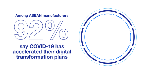 Với nhu cầu cấp bách đổi mới để chuyển đổi sang Công nghiệp 4.0, các nhà sản xuất khu vực ASEAN hiện đang gấp rút nâng cấp công nghệ. 39% nhà sản xuất đã triển khai phương pháp tiếp cận trung tâm đầu não hoặc tháp kiểm soát để tăng tính minh bạch trên toàn chuỗi cung ứng.