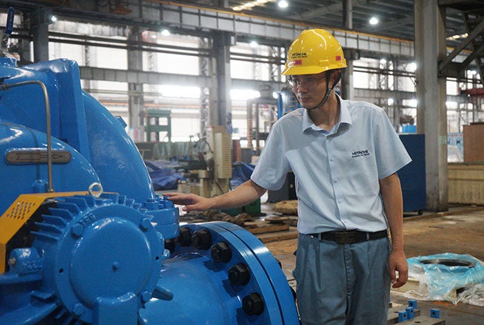泵作为水利工程建设中核心设备之一,在水流输送、水资源管理分配上发挥着重要的作用。日立泵制造(无锡)有限公司(以下简称“日立泵”)制造部副部长汤振容是一位和泵打了20年交道的日立人。20年间,他见证了日立的泵设备在“南水北调”、“引江济汉”、“引江济淮”等大型工程中发挥的重要作用,多次取得中国水利工程的重要奖项——“大禹奖”,为解决水资源课题贡献了力量。如今,汤振容和同事们正在开展标准系列产品的业务推进,致力于建立多种中小型标准化泵产品体系,希望为可持续水资源利用及绿色发展提供更丰富的产品与技术。
