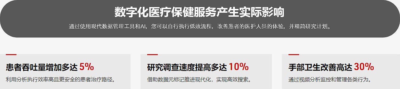 日立数字化医疗保健解决方案通过数据现代化、AI 和分析帮助医疗结构完成数字化转型。构建更好的运营模式,自动执行高效流程,改善患者和医护人员的体验,并精简研究计划。