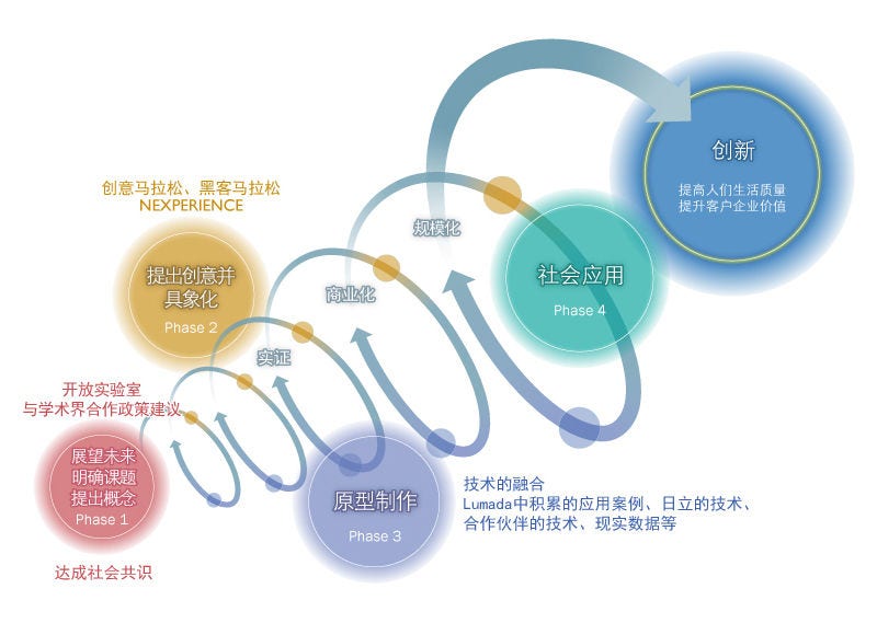 NEXPERIENCE不仅是一种设计手法,更是发展事业的一项强势技术,是日立与各利益相关方共同打造新商业模式和服务的协创方法论。通过:1.课题发现、2.解决方案创生、3.价值验证,这三个阶段引领创新和解决客户课题,发展社会创新事业。NEXPERIENCE已在全球数百个项目中应用并取得成果,并在这一过程中不断完善发展至今。