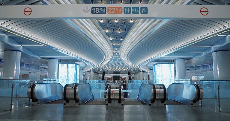这样一条具有重要意义的地铁线路,车站内设施的数字化建设的要求,自是不言而喻。 对于站内移动设施的建设,设备符合公共交通重载型电扶梯技术标准是前提。在此基础之上,通过云计算、大数据、人工智能、物联网等先进技术与产品之间的融合,提升乘客体验和安全保障水平、提高运营管理效率、从而满足新时代轨道交通发展的需要,更是新阶段的重要目标。