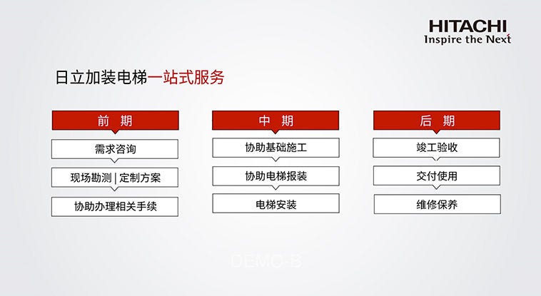 “为老旧小区提供加装服务,对日立电梯这样长期专注于B2B业务的电梯制造服务商是一项新的挑战。当项目的核心需求从原来应对大宗采购转换到针对单个案例进行产品设计,施工督造和维护保养时,就需要日立电梯更多从服务商思维出发,为旧楼加装项目度身定制出一套完善的解决方案。“