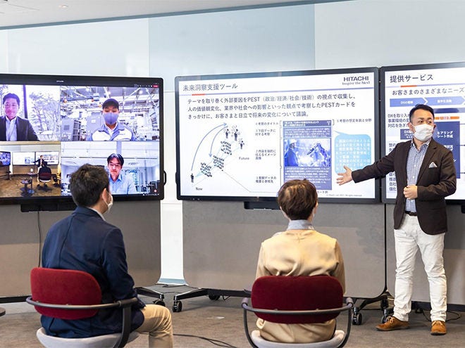 在“Co-Creation Studio”中,WEF(世界经济论坛)与被选为世界先进工厂“Lighthouse”的大甕事业所 (位于茨城县日立市)举行在线会议。