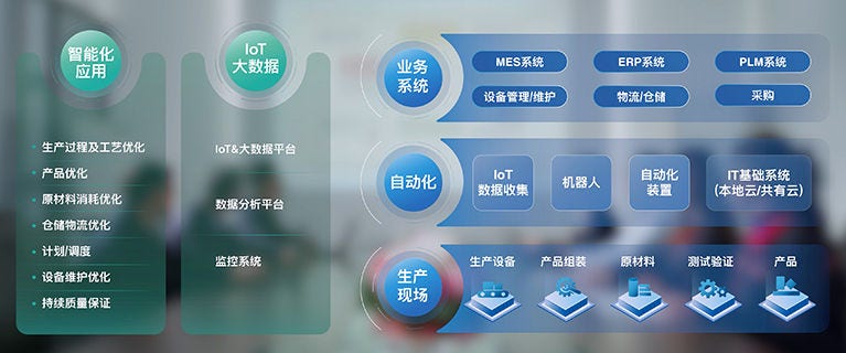 “数字化工厂战略与未来数字化远景蓝图”这一整体设计实施方案,既囊括了智能化应用、IoT大数据、业务系统、自动化、生产现场等,技术管理层面的规划;也涵盖了“数字化精益转型规划”、“数字化精益工厂设计”、“数字化工厂投资收益和推进路线”等企业发展战略层面的布局。