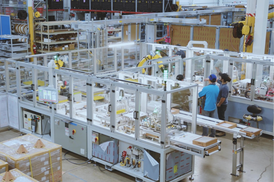 已投产的纯电动汽车电池生产线局部