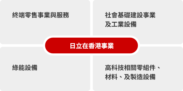 包括消費者端的日立品牌家電及數碼產品,以及各種解決方案。