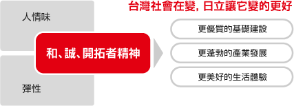 我們相信,日立創業者堅持的和,誠與開拓者精神的基本價值,將持續的體現在台灣更優質的基礎建設,更蓬勃的產業發展,以及人民更美好的生活體驗上。
